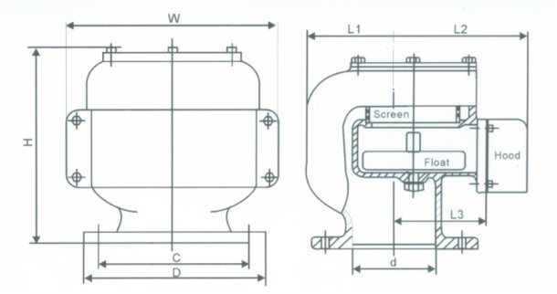Air Vent Head (Air Pipe Head) is check valve used for the ventilation system of oil tank or water tank. It keeps the tank pressure as the design pressure by breathing or inhaling. When the pressure is high, it breathes. When the pressure is low, it inhales. And it also have the function of preventing the sea water, rain, insect, mouse and spark into the tank.