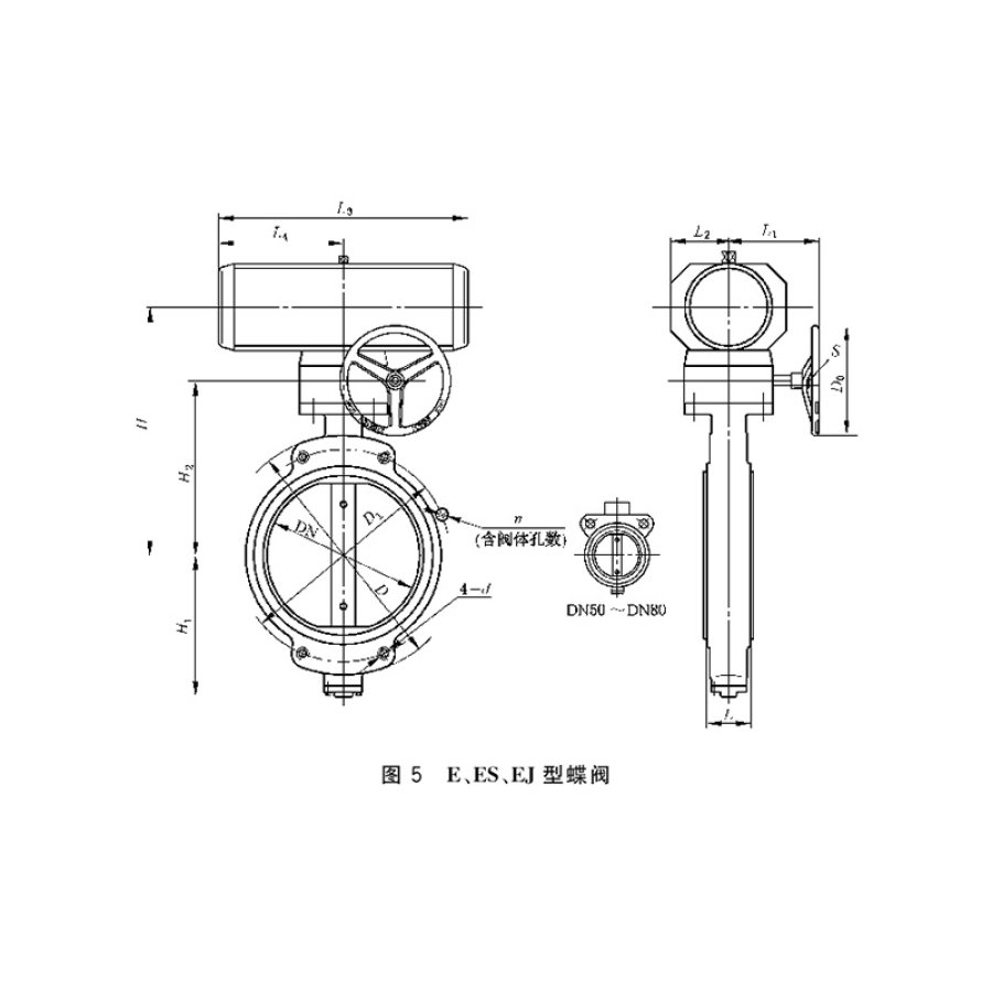 ES Basic dimensions of butterfly valve:
