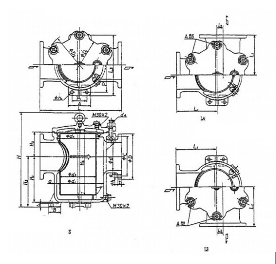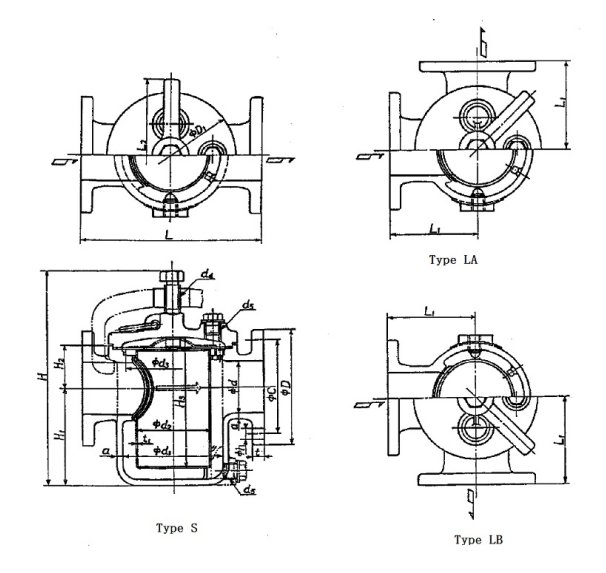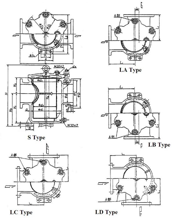Marine Can Water Filter JIS 7121 S Type 5K (DN25-DN100) Drawing