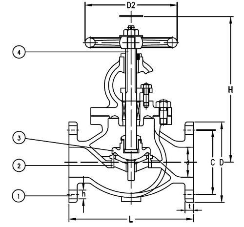 IMPA CODE | Size | L | D | C | No of Bolt Hole | h | t | H | D2 | Weight(kgs) |