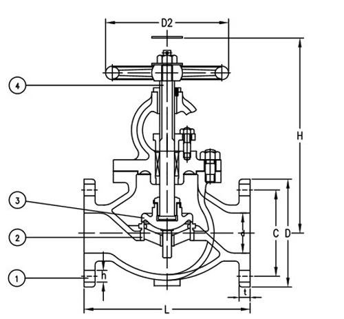 IMPA CODE | Size | L | D | C | t | No of bolt hole | h | H | D2 | Weight(kgs) |
