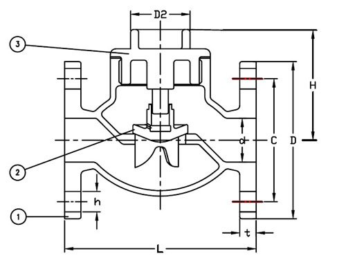 Size | L | D | C | No of Bolt | h | t | H | D2 |