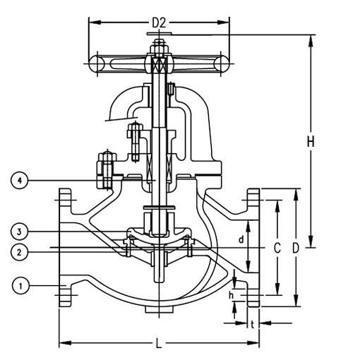 IMPA CODE | Size | L | D | C | No of Bolt Hole | h | t | H | D2 | Weight(kgs) |
