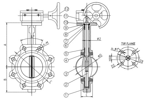 JIS F7480 Marine cast iron/ductile iron/cast steel lug-type butterfly valve turbine operation 5K/10K